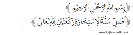 "Wahai Allah, bahwasanya aku mohon pilihan oleh-Mu dengan ilmu-Mu, dan mohon kepastian-Mu dengan kekuasaan-Mu, serta mohon kepada-Mu dari anugerah-Mu Yang Maha Agung, karena Engkaulah Dzat yang berkuasa, sedang aku tiada kuasa, dan Engkaulah Dzat Yang Maha Mengetahui, sedang aku tiada mengetahui, dan Engkaulah Dzat yang mengetahui yang ghoib. Wahai Allah, jika adanya, Engkau ketahui bahwa urusan ini ............ adalah baik bagiku, untuk duniaku, akhiratku, penghidupanku, dan akibaturusanku untukmasa sekarang maupun besoknya, maka kuasakanlah bagiku dan permudahkanlah untukku, kemudian berkahilah dalam urusan itu bagiku. Nanun jikalau adanya, Engkau ketahui bahwa urusan itu ............ menjadi buruk bagiku, untuk duniaku, akhiratku, penghidupanku, dan akibatnya persoalanku pada masa sekarang maupun besok, maka hindarkanlah aku dari padanya, lalu tetapkanlah bagiku pada kebaikan, bagaimanapun adanya kemudian ridhoilah aku dengan kebaikan itu."